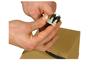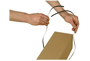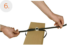 Schneiden Sie aus dem Verzurrband die benötigte Länge und Anzahl an Bändern und führen Sie das Verzurrband unter dem verpackten Gegenstand durch.